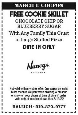 Buy a Large Stuffed or Family Thin Pizza and get a FREE Ice Cream Cookie Skillet. Dine-In Only.
