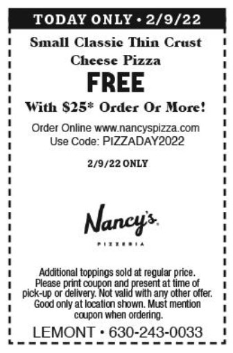 [National Pizza Day] FREE Small Classic Thin Crust Cheese Pizza with orders of $25+