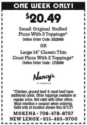 Paste at checkout at Nancy's Pizza