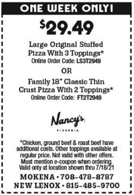 Paste at checkout at Nancy's Pizza