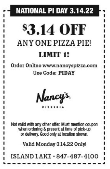 [Pi Day Deal] $3.14 off Any One Pizza Pie