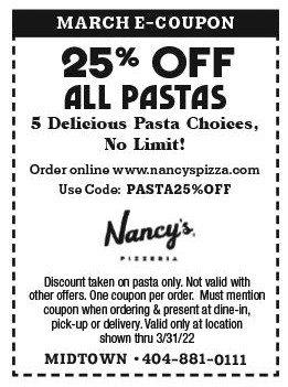 Paste at checkout at Nancy's Pizza