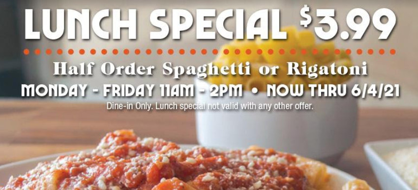 Lunch Special: Half Order of Spaghetti or Mostaccioli for $3.99 (Mon-Fri, 11-2pm)