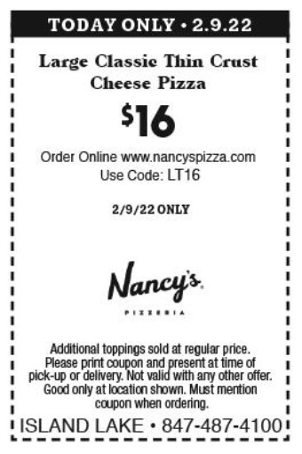 Paste at checkout at Nancy's Pizza