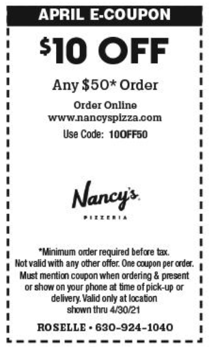 This offer is valid only at the Nancy's in Roselle, IL. Use the printable coupon or coupon code.