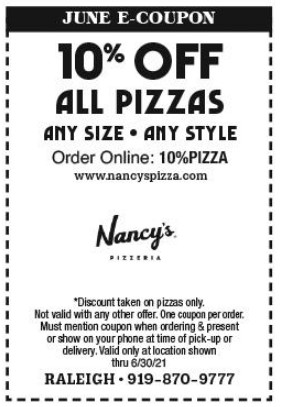 Printable and Online: 10% Off All Pizzas Any Size and Any Style [Raleigh]